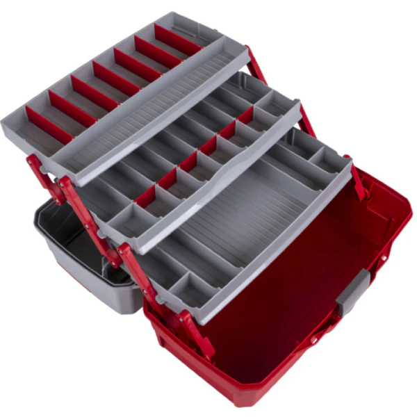 Caja de pesca clásica y amplia con 3 bandejas desplegables.